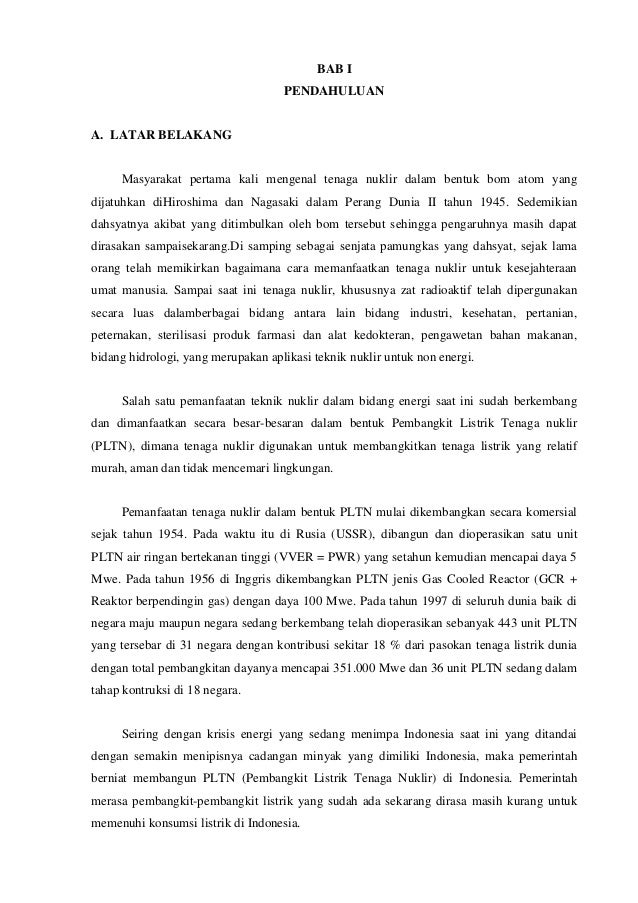 Makalah Energi Nuklir Docx Bab I Pendahuluan 1 1 Latar Belakang Masalah Energi Merupakan Salah Satu Isu Penting Yang Sedang Hangat Dibicarakan Semakin Course Hero